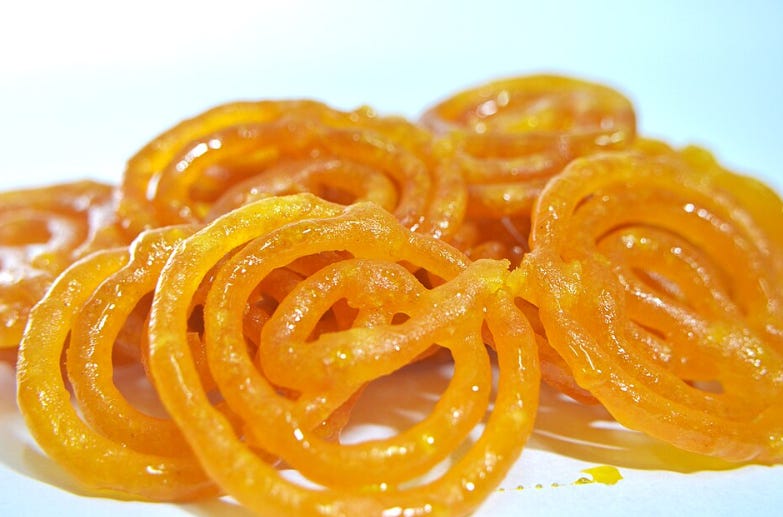 I was wandering around, and found a big container of jalebis. My mind went back to a specific time, but only for a short moment.