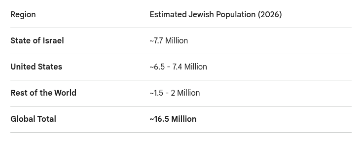 Global Jewish Population: ~16.5 million.