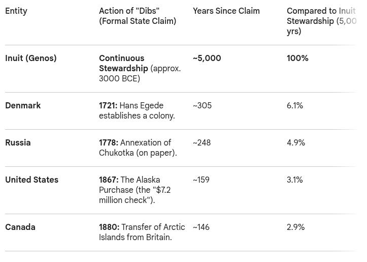 Axis 5: Trickster (180° Rotation): The states claim they “own” the land because they have the deeds. Rotating this: The deeds are only valuable because the Inuit kept the land worth owning. Without the 5,000 years of “Genos-based” stewardship, there would be no “resources” for the Westphalian states to claim. The states are effectively claiming a “copyright” on a masterpiece they didn’t paint.